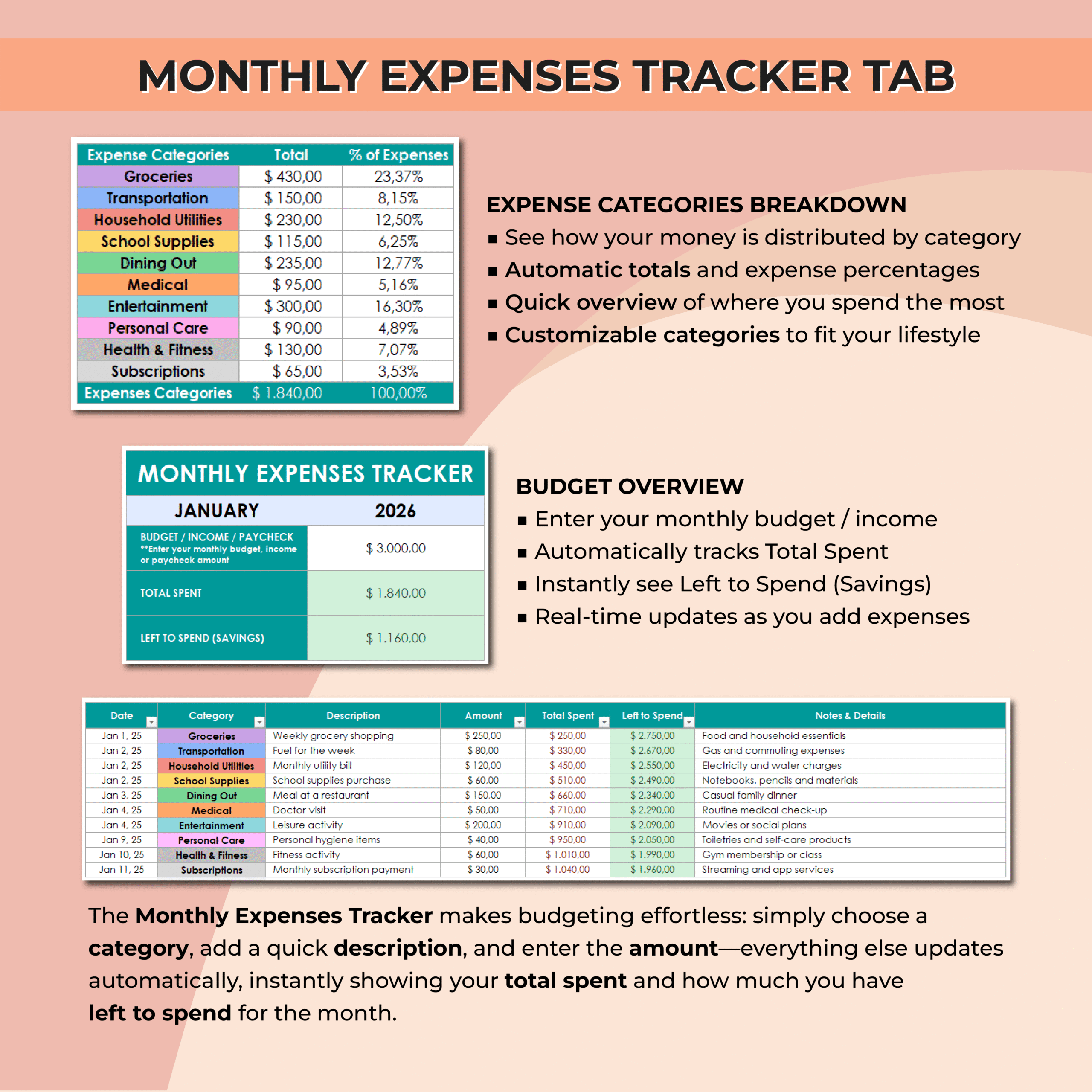 If you want a simple, clear, and effective budgeting tool, this spreadsheet is designed to work without manual calculations or complex setups.