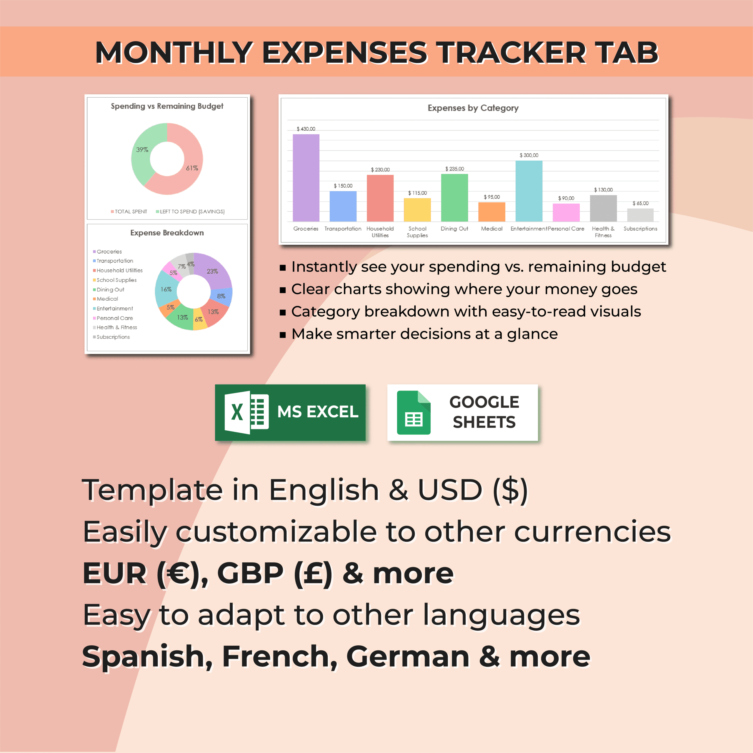 If you’re looking for a monthly budget spreadsheet for Excel and Google Sheets that makes expense tracking simple and visual, this template is the perfect solution to take control of your finances.