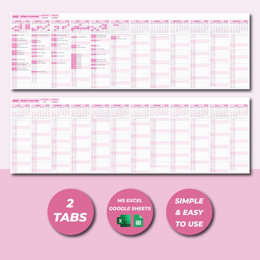 Whether you’re planning your year at work, at school, or at home, this Excel & Google Sheets calendar template is the perfect blend of structure and simplicity — giving you clarity at a glance, all year long.